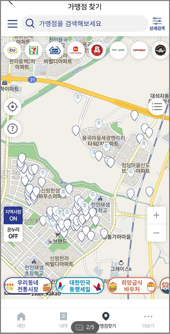 지도에 표시된 곳은 모두 사용처라고 보시면 되고 원하시는 업체는 검색을 통하여 찾을수 있습니다.