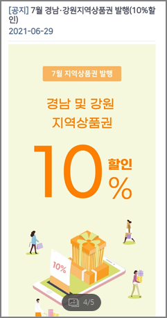 우선 최대 장점은 여러가지 상품권들을 10% 정도 할인된 금액에 구매할수 있는 장점이 있습니다. 예를들어 온누리상품권을 들 수 있는데요? 10만원의 금액을 10% 할인이된 약 9만원정도에 구매할수 있는 장점이 있습니다.