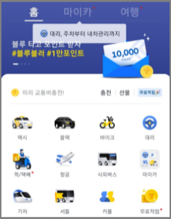 해당 어플에서는 콜택시 부르는법과 같은 카카오톡 택시 사용법 대리운전 등이 대표적이면서도 이외에 교통관련 서비스를 이용할 수 있습니다.