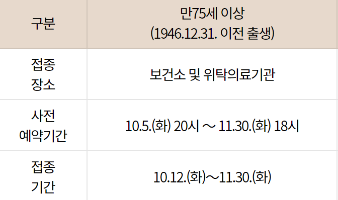 - 만 65세 ~ 69세 - 10월 14일 부터