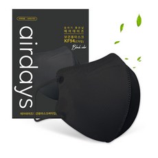 no.4 KF94 블랙 에어데이즈 새부리형 마스크 대형플러스 50매 조정석 마스크 AIRDAYS, 특대형 50매 (개별박스 제공) 29,500원 후기확인 (113) |