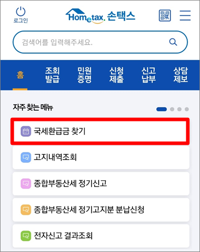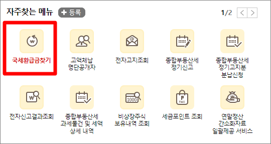 2. 메인화면의 국세환급금 조회를 눌러 준다