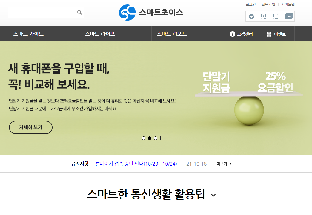 이번에도 별도의 사이트로 이동을해주셔야 합니다. 포털검색창에 스마트 초이스라고 검색을 한후에 스마트 초이스 홈페이지를 방문해 주시면 됩니다.