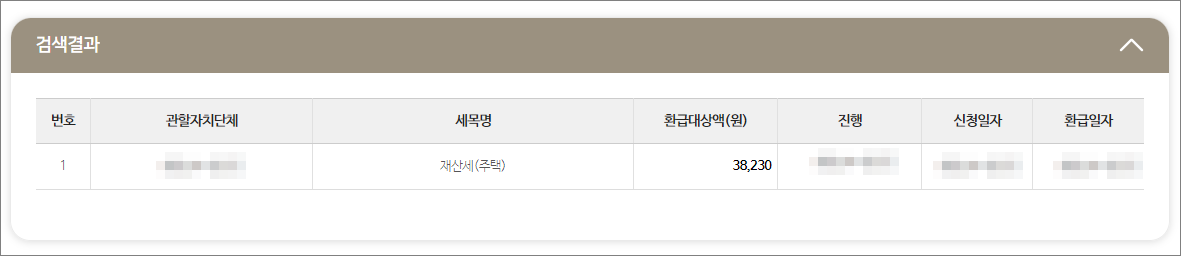 인증을 진행하면 바로 결과가 조회되고, 환급받을수 있는 지방세가 있다면 아래와 같이 조회가 됨을 확인하실수 있습니다.